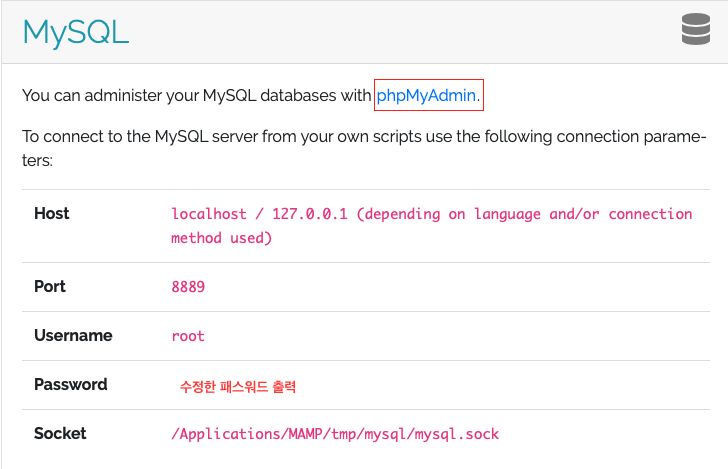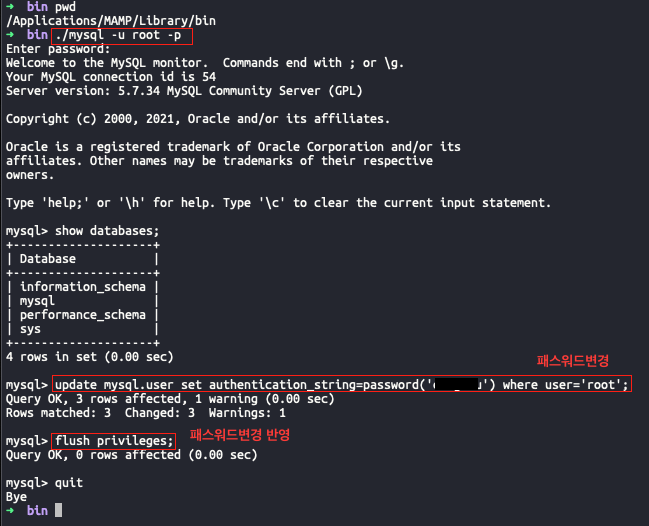 MAMP에서 MySQL 패스워드 변경하기